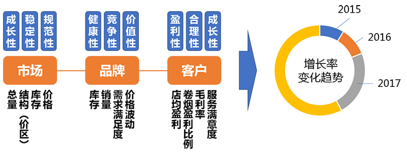 建立系統化的卷煙市場監測分析體系,從市場總量、品牌和客戶等三個維度全面分析全國范圍或區域卷煙市場總體表現及變化趨勢,并在監測數據積累的基礎上,進行關于零售價格變化與市場表現的關系研究、社會存銷比預警研究等深度挖掘。