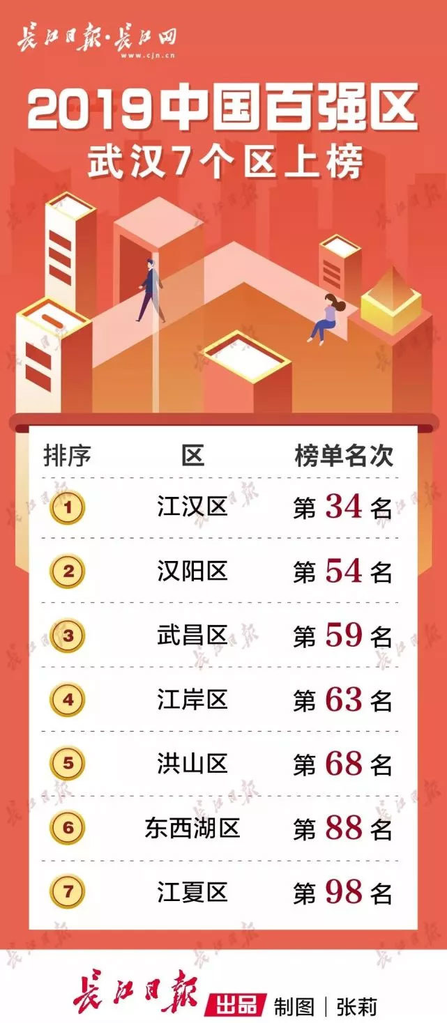 近日,工業和信息化部發布《2019中國城區綜合競爭力百強研究》。武漢市有7個區上榜,分別是江漢區、漢陽區、武昌區、江岸區、洪山區、東西湖區、江夏區。